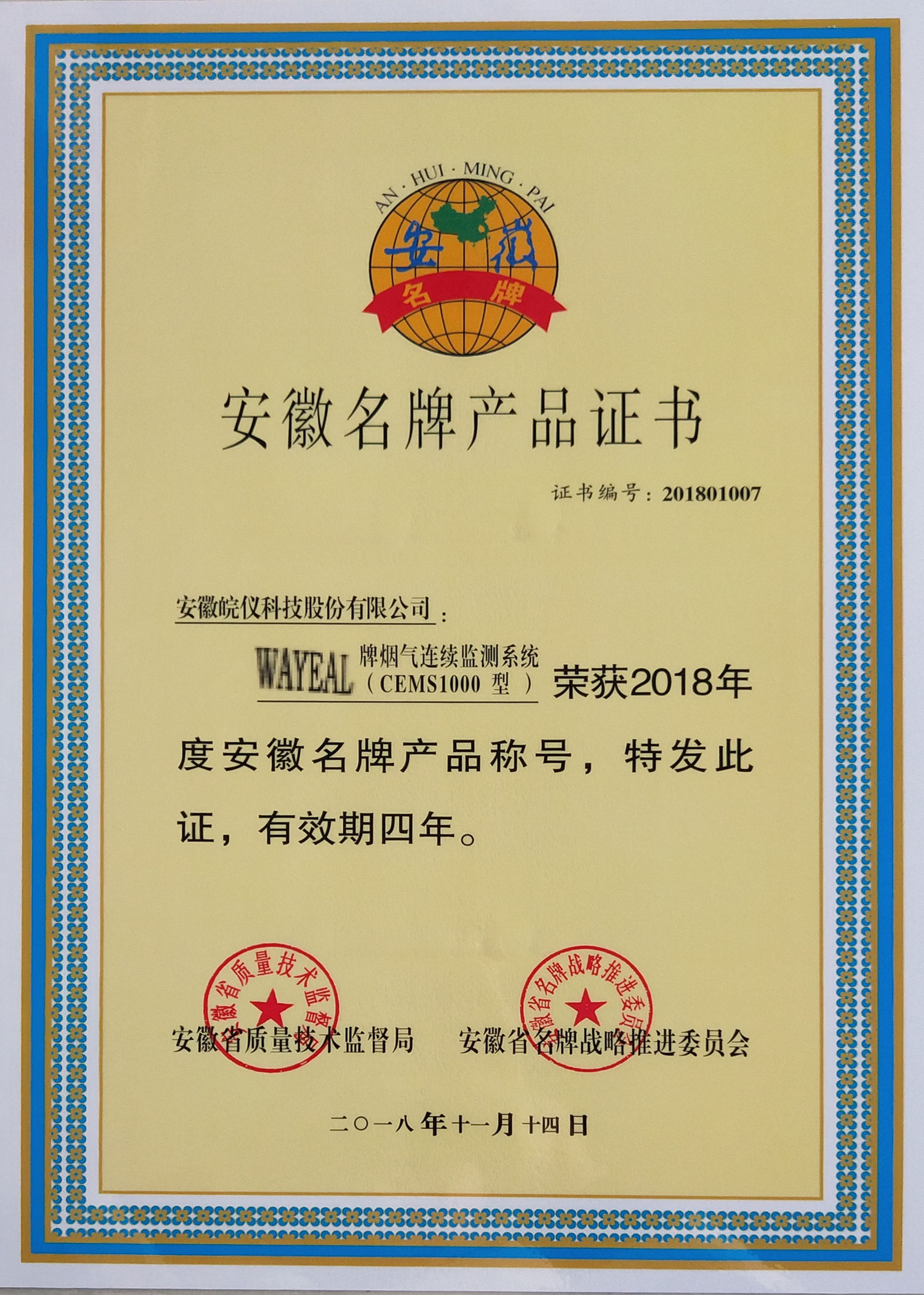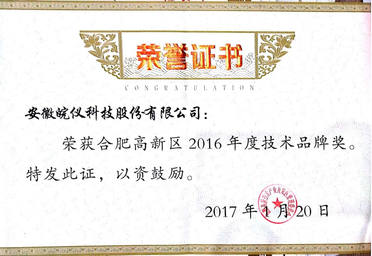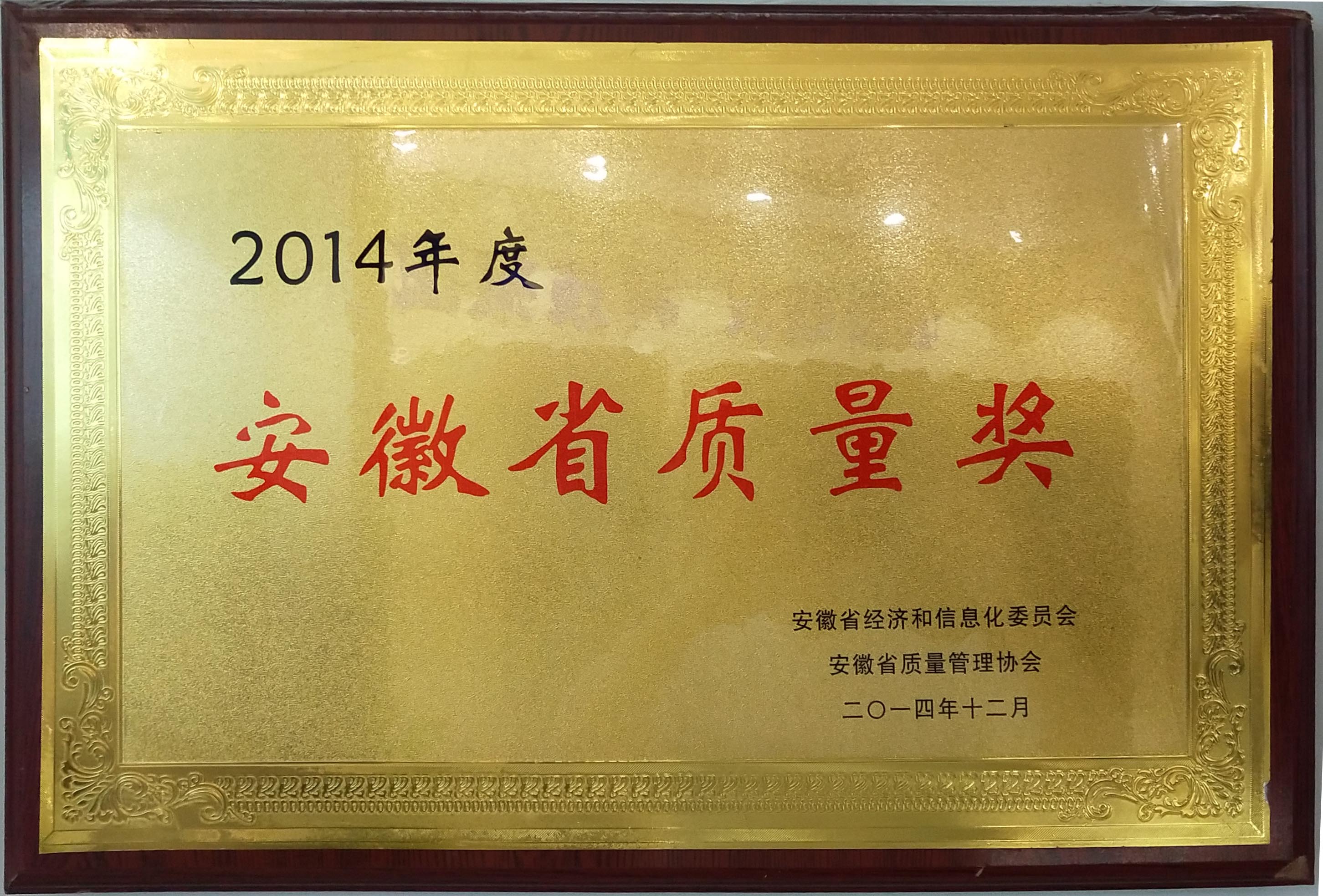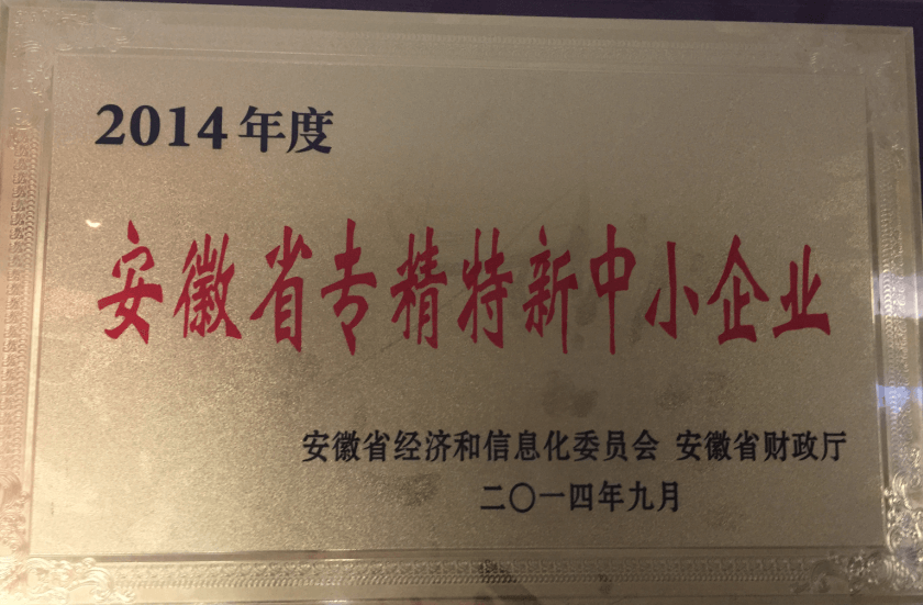 11月荣获安徽省消费品工业“三品”示范企业