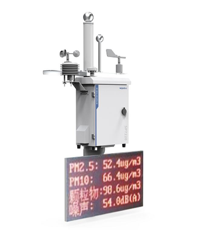 SP7220扬尘(噪声)监测系统由颗粒物检测单元、噪声检测单元、气象五参数传感器、数据采集传输单元及供电系统组成。主要监测PM2.5、PM10、TSP、噪声、温度、湿度、大气压、风速风向。实现了实时远程在线扬尘噪声监控。
