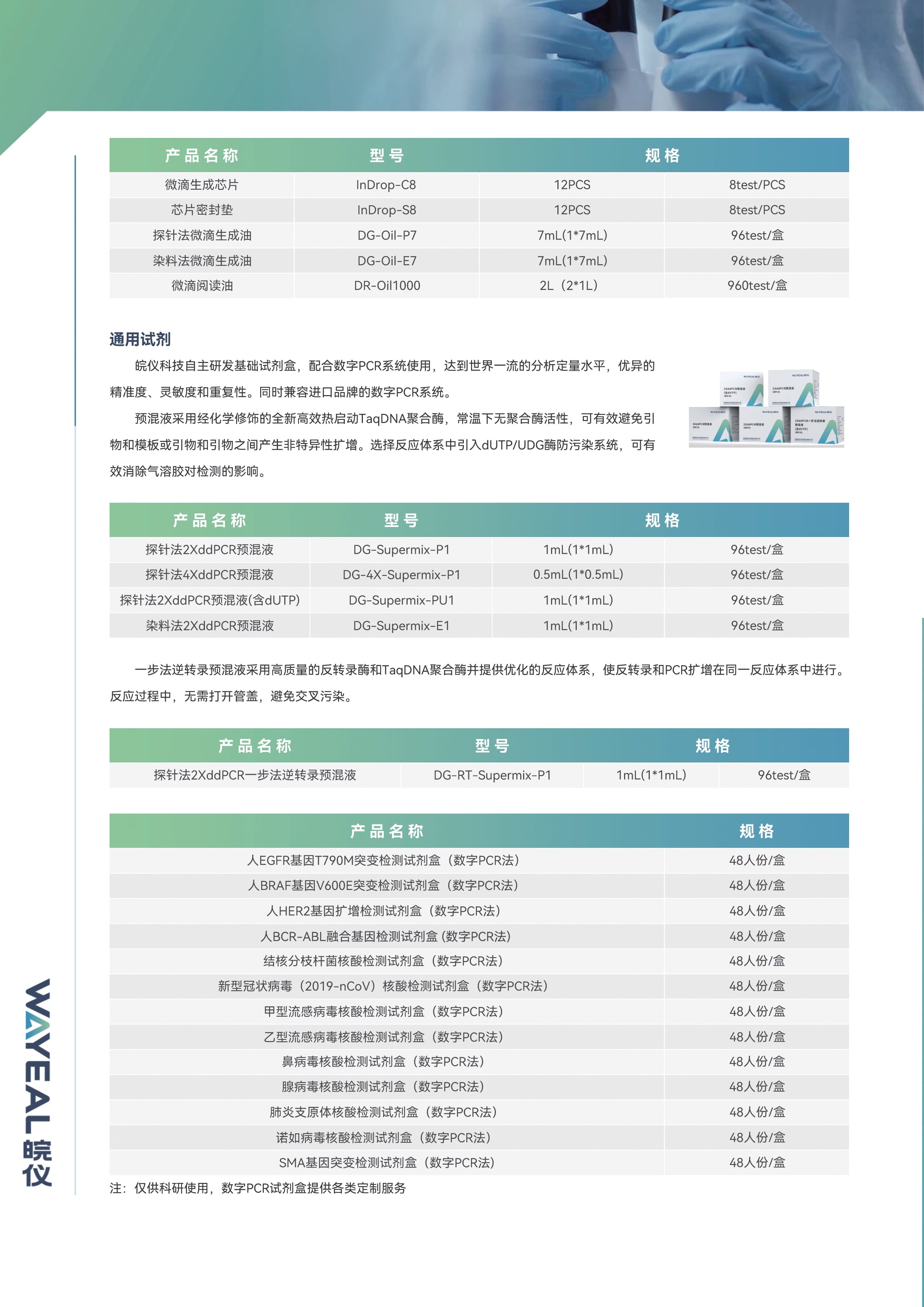 皖仪科技数字PCR系统包括:微滴生成器、微滴扩增仪、微滴阅读仪以及配套基础试剂和耗材。