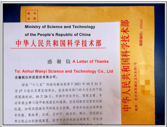 Wayeal received a letter of thanks from the Ministry of Science and Technology of the People's Republic of China. In the letter, the Ministry of Science and Technology affirmed the contribution of Wayeal in the "13th Five-Year Plan" science and technology innovation achievements, which is undoubtedly the best New Year's gift for Wayeal in the coming New Year.