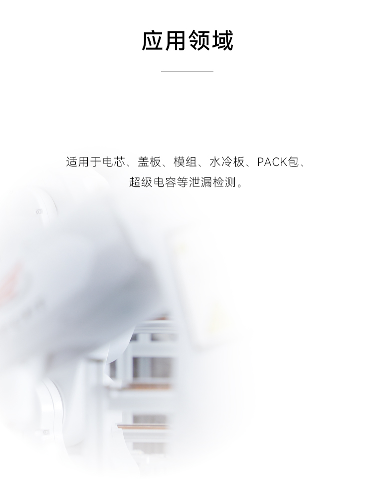 适用于电芯、盖板、模组、水冷板、PACK包、超级电容等泄漏检测。
