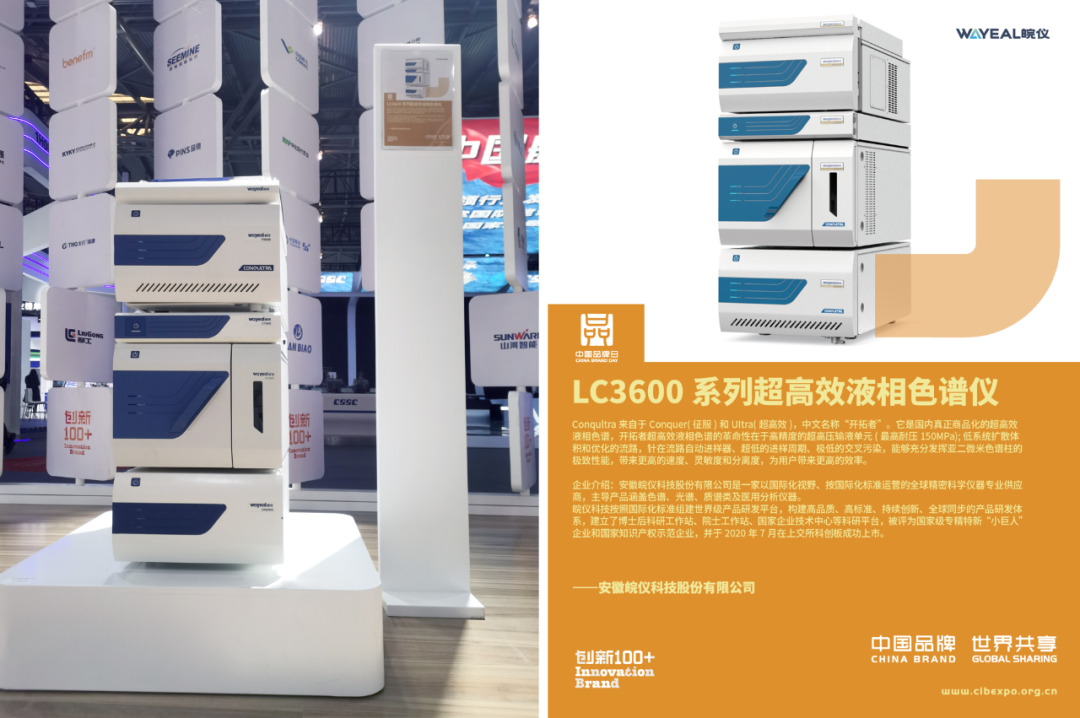 以“品牌新力量,品质新生活”为主题的2023年中国品牌日活动于5月10日在上海世博展览馆隆重开幕。本次活动遴选约1900家知名自主品牌企业和具有发展潜力的创新型企业进行主题展示。在今年中国品牌博览会线下主题展区中,新增创新100+精品展区,皖仪科技携LC3600超高效液相色谱仪应邀参展,献礼“中国品牌”,致敬“中国力量”。